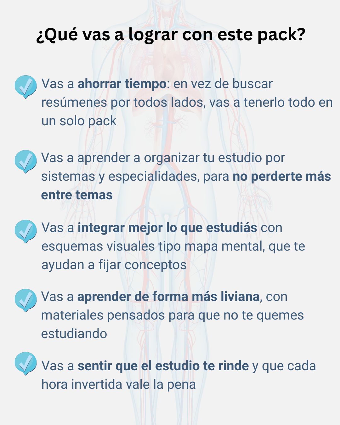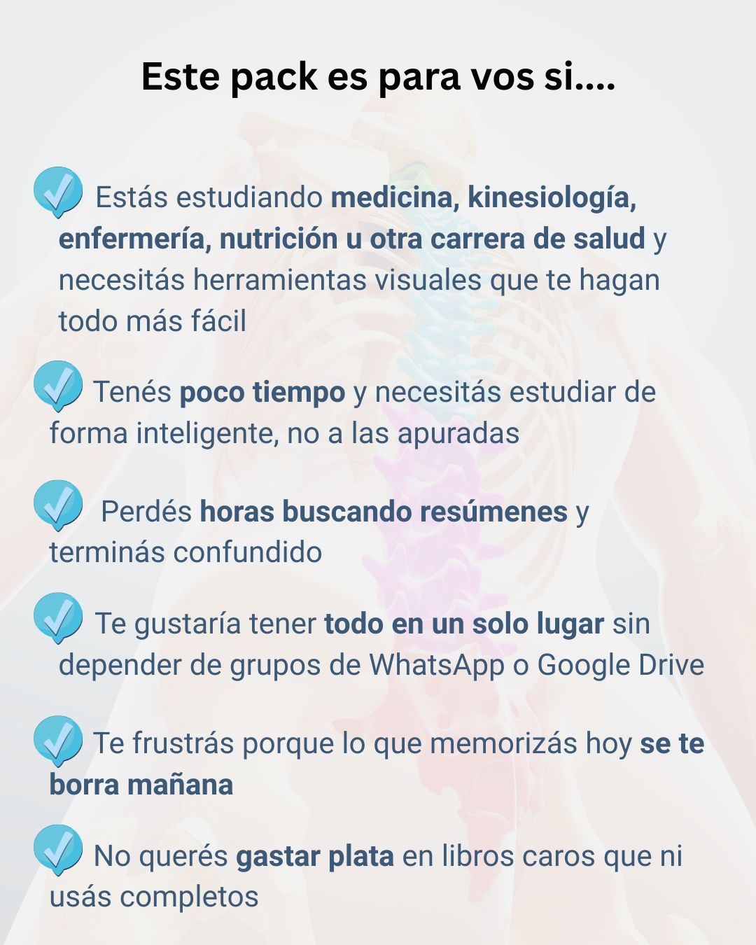 "Antes me pasaba horas buscando resúmenes. Con este pack entendí temas como anatomía y farmacología en una tarde."